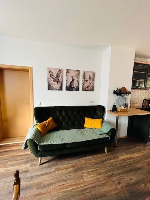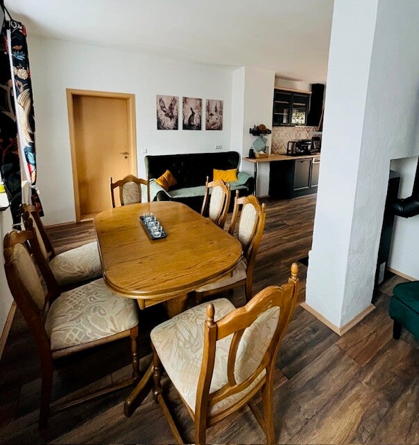 - Offener Wohn- und Essbereich mit Sofa, Sessel und Essbereich für 6 Personen