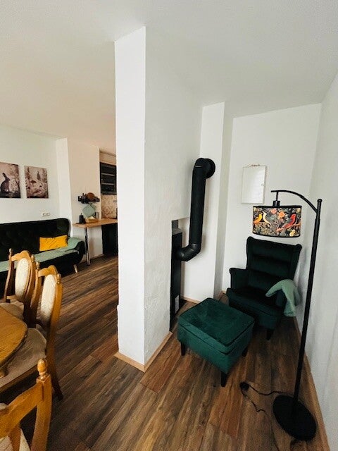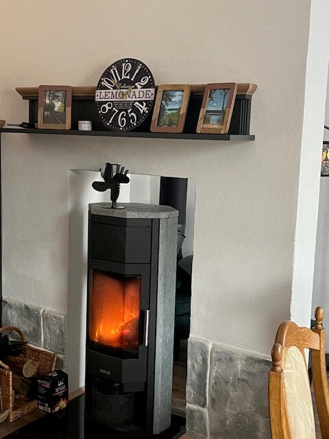 - Kaminofen, Kachelofen und weiterer Ofen (keine Zentralheizung), Elektroheizung im Bad